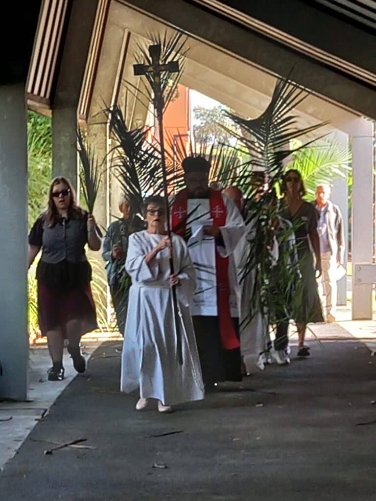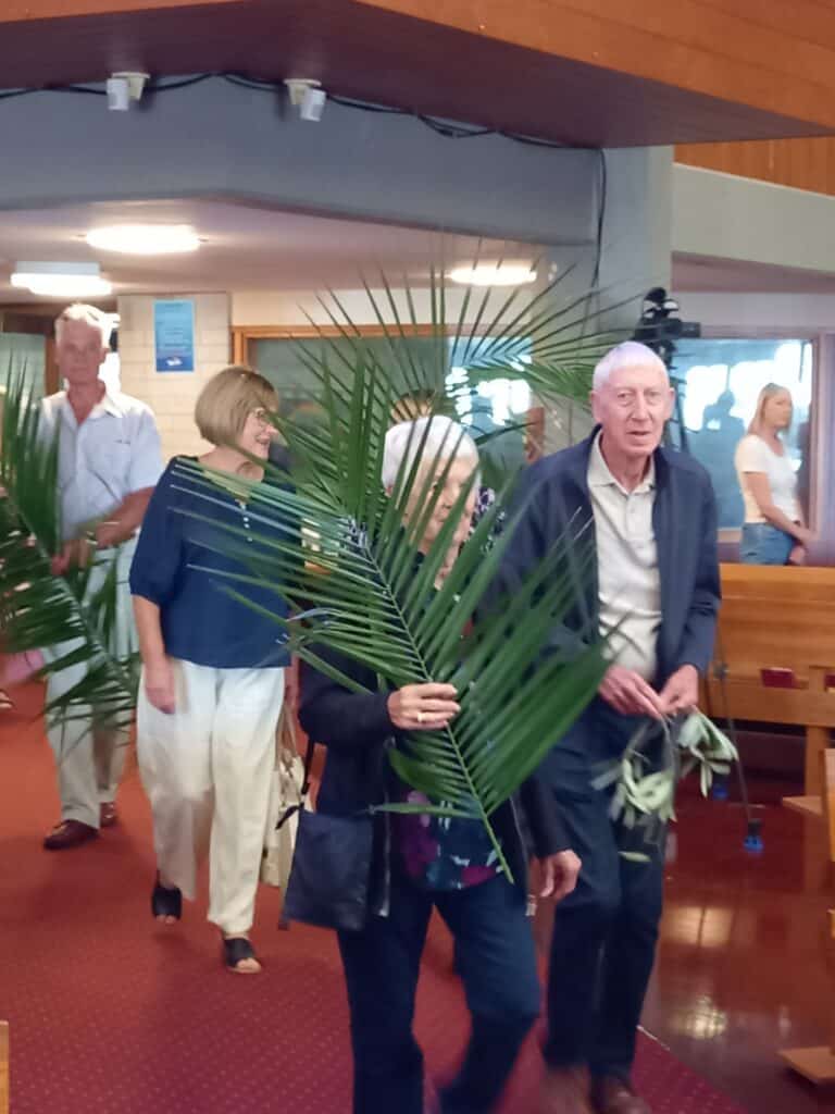 Palm Sunday began with a joyful gathering at the Village Green, where we come together with our friends from Our Lady Star of the Sea to hear the proclamation of the Palm Gospel and receive the blessing of the palms. From there, we processed along the main street to the church, recalling Jesus’ triumphal entry into Jerusalem. This public act of faith highlights the beauty and rich tradition of the day, offering a meaningful opportunity to witness to our worship and walk together as a visible Christian community.