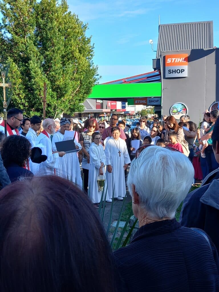 Palm Sunday began with a joyful gathering at the Village Green, where we come together with our friends from Our Lady Star of the Sea to hear the proclamation of the Palm Gospel and receive the blessing of the palms. From there, we processed along the main street to the church, recalling Jesus’ triumphal entry into Jerusalem. This public act of faith highlights the beauty and rich tradition of the day, offering a meaningful opportunity to witness to our worship and walk together as a visible Christian community.